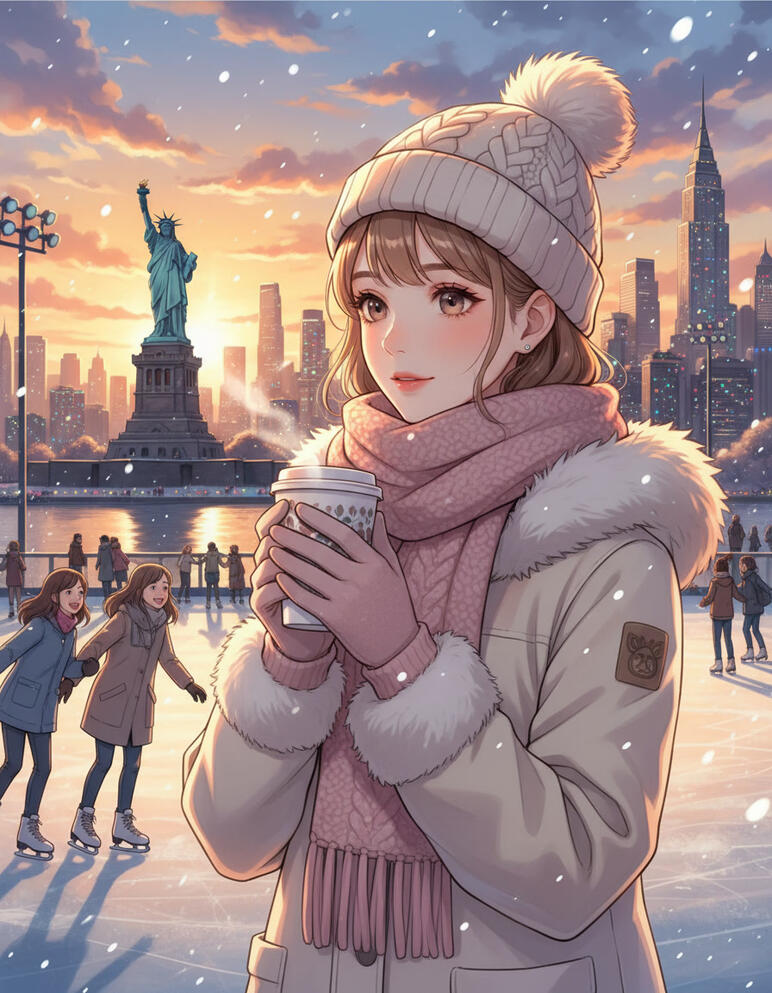 Anime characters travelling through seasons and destinations.
